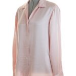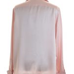 Шелковая блузка Ralph Lauren нежного розового цвета. Слегка приталенный фасон. V-образная горловина с воротником стойкой. Застежка на перламутровые пуговки с гравировкой бренда. Длинный рукав с широкой отворачиваемой манжетой. Состав: 100% натуральный шелк экстра качества — плотный, необычайно мягкий, с великолепным шелковистым блеском. Длина чуть ниже ягодиц. Состояние — идеальное, как новое.