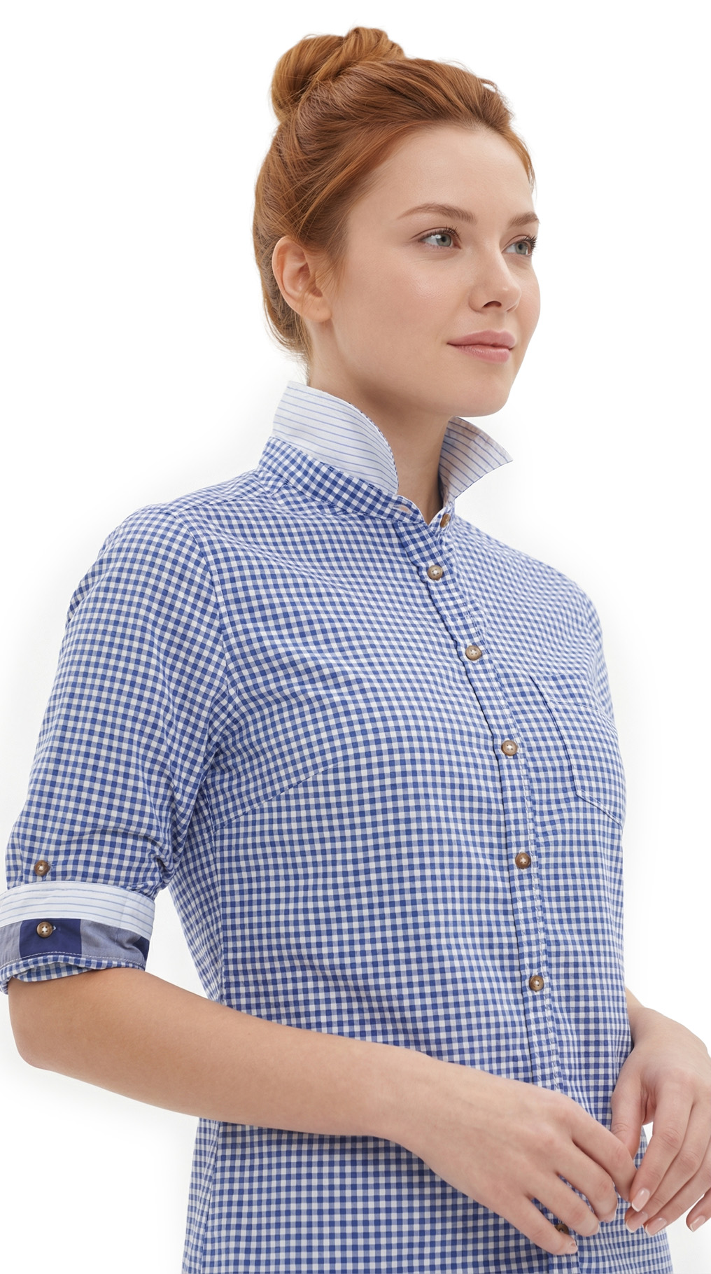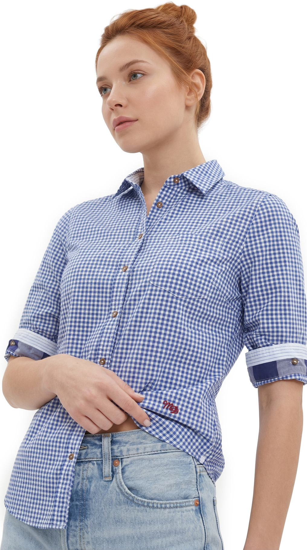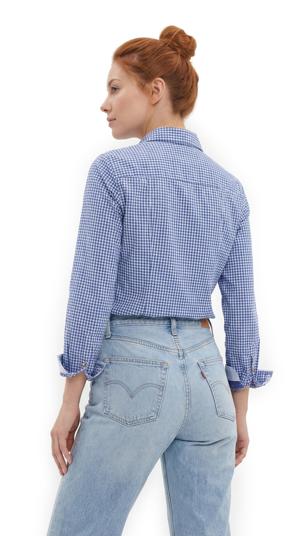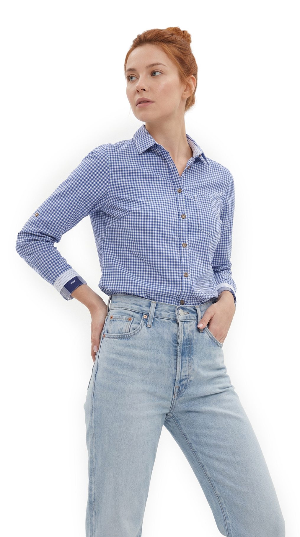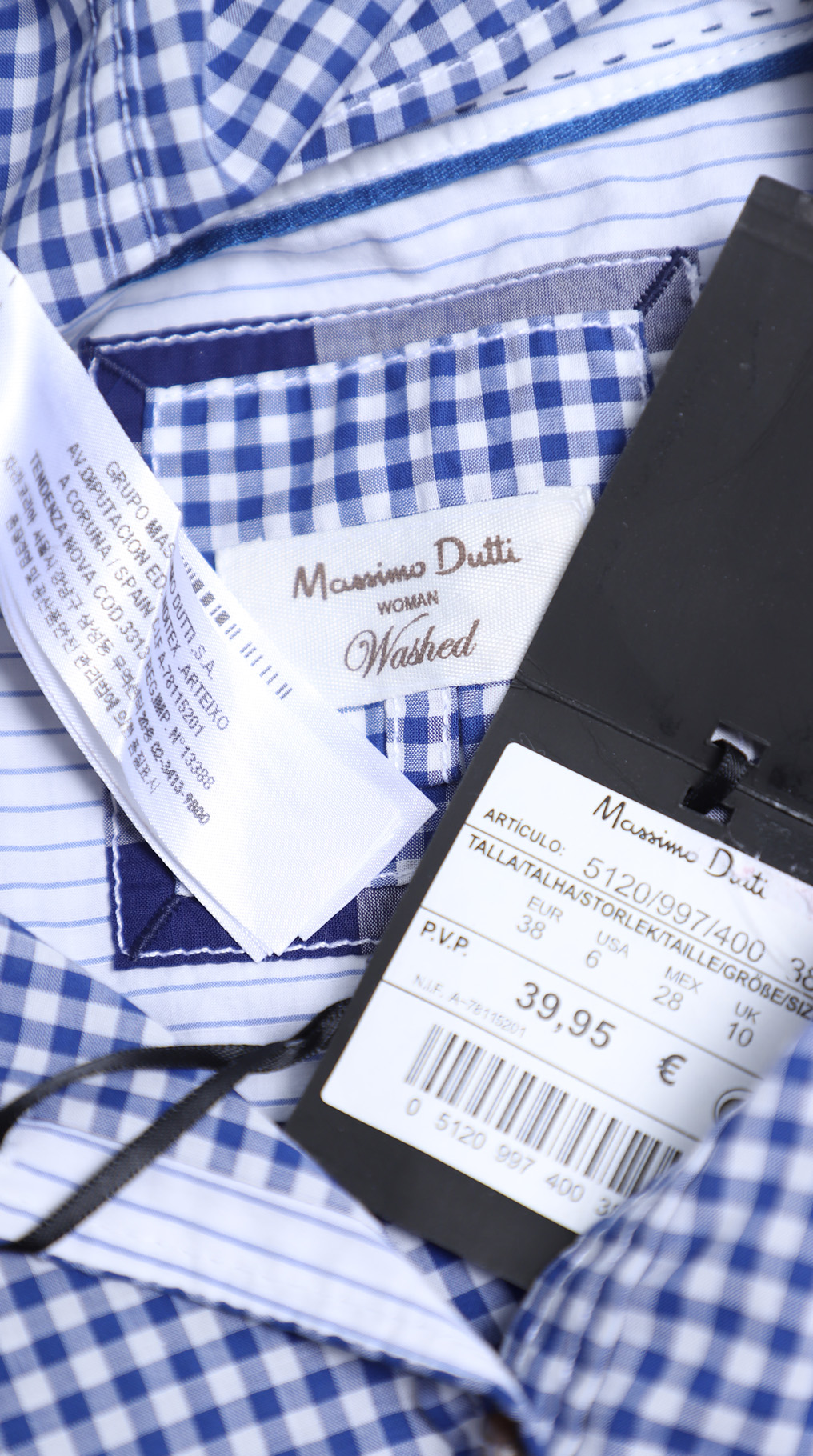 Оригинал. Новая хлопковая блузка рубашка Massimo Dutti в мелкую клетку сине-голубых тонов. Женственный приталенный удлиненный фасон с длинным отворачиваемым на пуговку рукавом и классическим воротничком. Скругленная линия низа. Фирменная вышивка «MD». Накладной кармашек на груди. Застежка на пуговки. В составе: 100% хлопок — ткань легкая, мягкая. Пошив — Тунис. Состояние — новое, с фирменной биркой магазина Massimo Dutti. Цена на бирке — 39.95 евро.