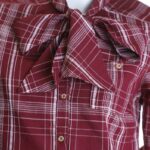 Оригинал. Новая хлопковая блузка Massimo Dutti в крупную клетку бордово-белых тонов. Женственный полу-приталенный фасон с длинным рукавом и подвязкой на бантик по горловине. Скругленная линия низа. Кокетка по спинке и линии плеча. Накладной кармашек с пуговкой на груди. Застежка на пуговки. В составе: 100% хлопок — ткань легкая, мягкая. Пошив — Марокко. Состояние — новое, с фирменной биркой магазина Massimo Dutti. Цена на бирке — 49.95 евро.