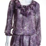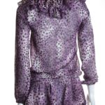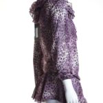 Новая блузка итальянского бренда Sarah Chole в светло-фиолетовых тонах и черный горошек. Вплетение золотистых нитей придают блузке блеска и шарма. Красивое жабо по горловине. Длинный рукав. Кокетка с резинкой по талии. Фирменная золотая плашка с гравировкой бренда. В составе 100% п.э — ткань легкая, воздушная, полупрозрачная. Состояние — новое, с фирменной биркой Sarah Chole. Цена на бирке — 44.90 евро.