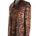 Дизайнерская шелковая блузка премиального американского бренда Carlisle. Стильный принт в бежево-коричневых тонах. Воротничок «стойка» — оригинальный элемент этой блузочки. Приталенный женственный фасон. Застегивается на элегантные перламутровые пуговки. Длинный рукав с широкой манжетой. В составе 100% натуральный шелк экстра качества — плотный, бархатистый на ощупь, очень приятный к телу. Длина по середину ягодиц. Состояние — идеальное, как новое. Покупалась за 175$. Из гардероба российской знаменитости.