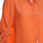 Новая шелковая блузка премиального итальянского бренда Stefanel яркого рыжего цвета. Прямой рубашечный покрой с длинным рукавом. Классический воротничок стойка. Застежка на перламутровые пуговки. В составе: 100% натуральный шелк — ткань экстра качества: средней плотности, необычайно мягкая, легкая, воздушная, по фактуре «крепе». Состояние — новое, с оригинальной биркой магазина Stefanel. Цена на бирке — 155 евро.