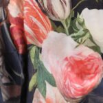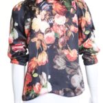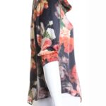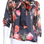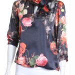 Шелковая блузка премиального польского бренда Vanilla черного цвета с объемным принтом цветущих роз. Свободный фасон с рукавом 3/4 и широким бантом (съемный, продевается сквозь петли на горловине). Рукав на присборенной резинке — смотрится пышно и элегантно. Без застежки. В составе: 100% натуральный шелк, без подклада — ткань легкая, воздушная. Состояние — отличное.