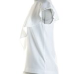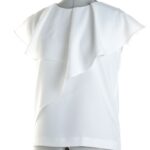 Блузка Zara белого цвета без рукавов. Элегантный свободный крой с воланами по переду. Застежка сзади на пуговку. Бирка с составом срезана — экспертная оценка: п/э. Состояние — идеальное, как новое.