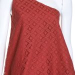 Новый кружевной секси-топ итальянского бренда Stefanel редкого терракотового цвета. Дизайнерский фасон трапеция с открытым плечом. Боковая застежка на молнию. В составе: 75% хлопок, 25% полиамид, на подкладе из 100% хлопка: ткань экстра качества: легкая, приятная в носке. Состояние — новое, с фирменной биркой магазина Stefanel. Цена на бирке — 120 евро.