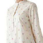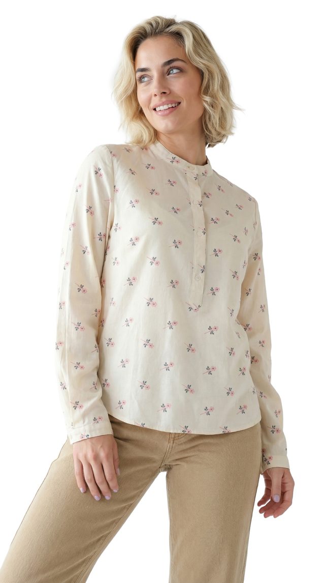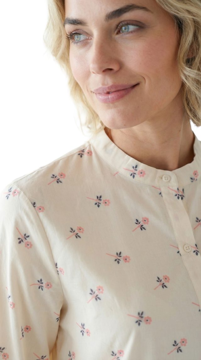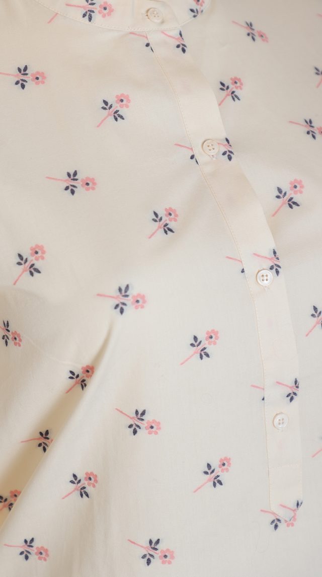 Оригинал. Новая блузка — рубашка концерна Max Mara (линия Max&Co) теплого сливочного цвета с нежным цветочным принтом. Прямой, слегка расклешенный от груди, покрой с воротничком стойка и застежкой на пуговки с гравировкой Max&Co. Длинный рукав на пуговках. Скругленная линия низа. Кокетка и складочки по спинке для комфортной посадки. В составе: 100% хлопок — ткань средней плотности,приятная к телу. Состояние — новое, из аутлета концерна Max Mara (ярлык бренда надрезан — это политика аутлета).