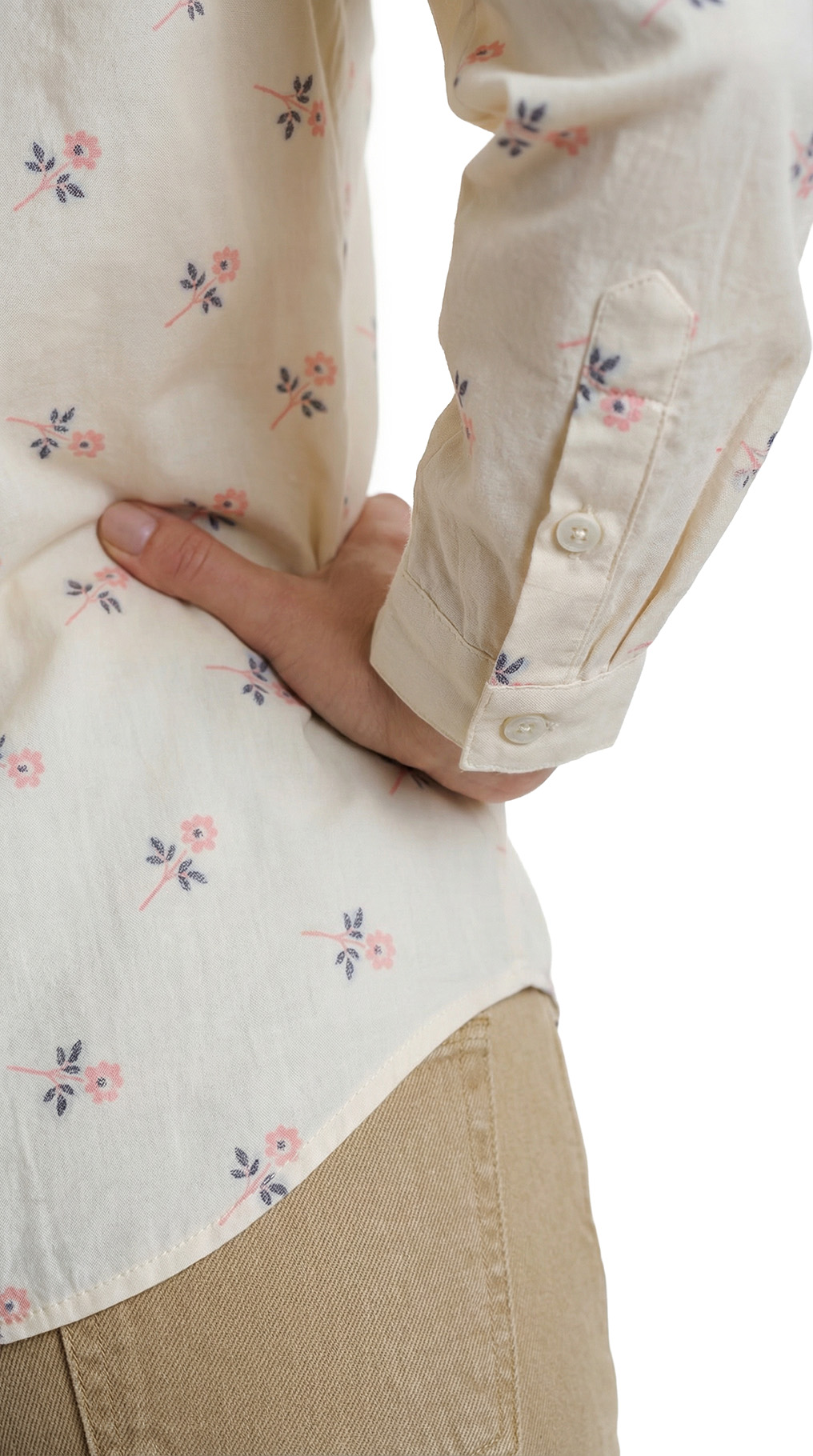 Оригинал. Новая блузка — рубашка концерна Max Mara (линия Max&Co) теплого сливочного цвета с нежным цветочным принтом. Прямой, слегка расклешенный от груди, покрой с воротничком стойка и застежкой на пуговки с гравировкой Max&Co. Длинный рукав на пуговках. Скругленная линия низа. Кокетка и складочки по спинке для комфортной посадки. В составе: 100% хлопок — ткань средней плотности,приятная к телу. Состояние — новое, из аутлета концерна Max Mara (ярлык бренда надрезан — это политика аутлета).