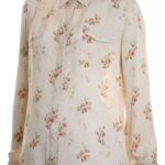 Шелковая блузка премиального американского бренда Polo Ralph Lauren нежного кремового цвета с цветочным принтом. Женственный приталенный покрой с длинным рукавом на широкой манжетой. Классический отложной воротничок. Застежка на яркие перламутровые пуговки. Накладные кармашки на груди. Эполеты на плечах. В составе: 100% натуральный шелк экстра качества — плотный, мягкий, бархатистый на ощупь. Эксклюзивная вещь из США — в единственном экземпляре в России. Состояние — отличное.