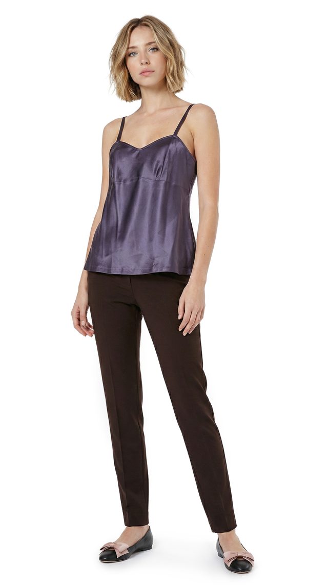 Новый шелковый топ-ками французского бренда класса «люкс» Zapa Paris глубокого фиолетового цвета. Регулируемые бретели. Красивый вырез декольте. Кокетка со складками для поддержки груди. В составе 51% натуральный шелк, 49% хлопок: ткань экстра качества — средней плотности, бархатистая, с матовым отливом. Эксклюзив: в единственном экземпляре в России. Состояние — новое, с фирменной биркой Zapa.