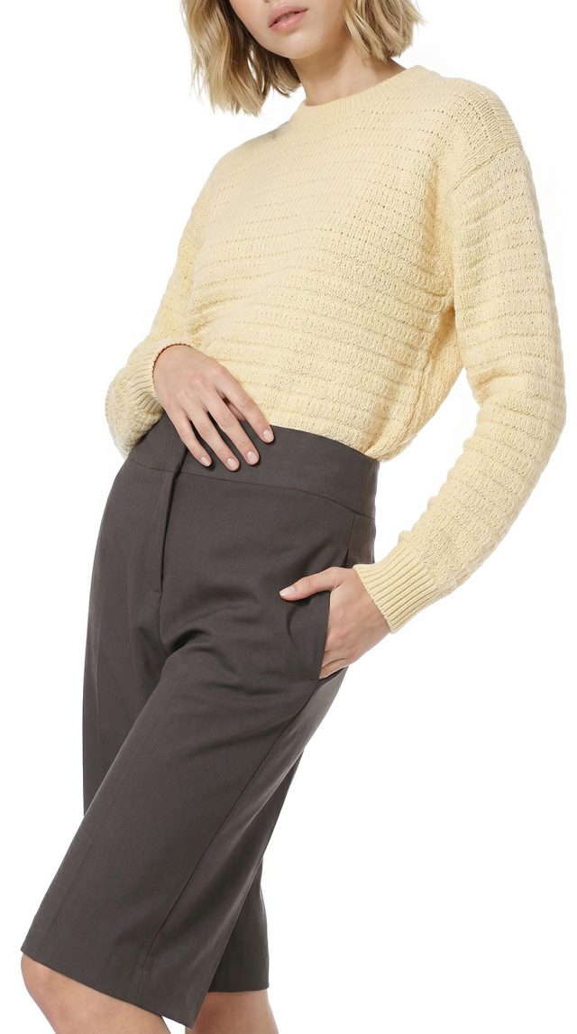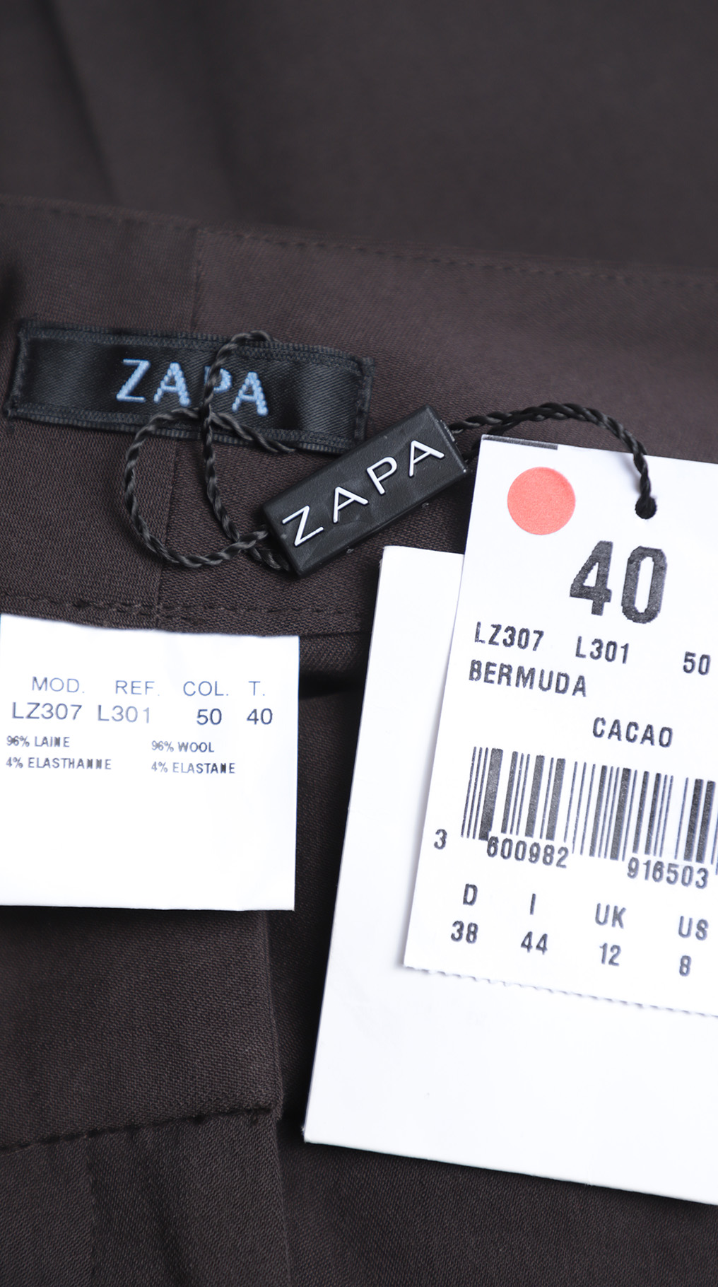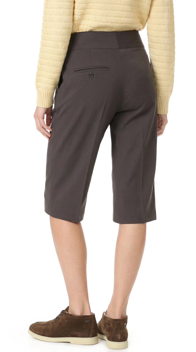 Новые шерстяные брюки бермуды французского бренда класса «люкс» Zapa Paris кофейного цвета. Прямой фасон с высокой посадкой и широким поясом по талии. Застежка на молнию и потайные клипсы. Врезные кармашки по бокам, декоративный — по спинке. Премиальное качество пошива и материалов. В составе 96% шерсть, 4% эластан, без подкалада — ткань легкая, мягкая, шелковистая, с небольшим стретчем. Эксклюзив: в единственном экземпляре в России. Состояние — новое, с фирменной биркой Zapa.