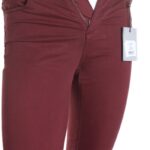 Новые брюки легендарного французского бренда Cop Copine бордового цвета. Брючины зауженные книзу. Застежка на пуговку и молнию. Врезные кармашки спереди, большие накладные кармашки по спинке. Пояс со шличками под ремень. Фирменная фурнитура с гравировкой бренда. В составе — 97% хлопок, 3% эластан, без подклада: ткань плотная, мягкая. Состояние — новое, с оригинальной запломбированной биркой Cop Copine.