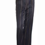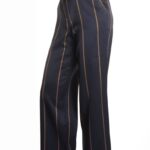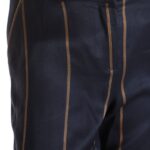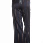 Новые стильные брюки легендарного французского бренда Cop Copine темно-синего (чернильного) цвета с поперечными бежевыми полосами. Широкие брючины с посадкой по талии. Врезные кармашки по бокам, накладные по спинке. Пояс со шличками под ремень. Застежка на молнию и пуговку. В составе — 45% вискоза, 25% полиамид, 15% шерсть, 15% кашемир, без подклада — ткань экстра качества: мягкая, шелковистая. Состояние — новое, с оригинальной запломбированной биркой Cop Copine.