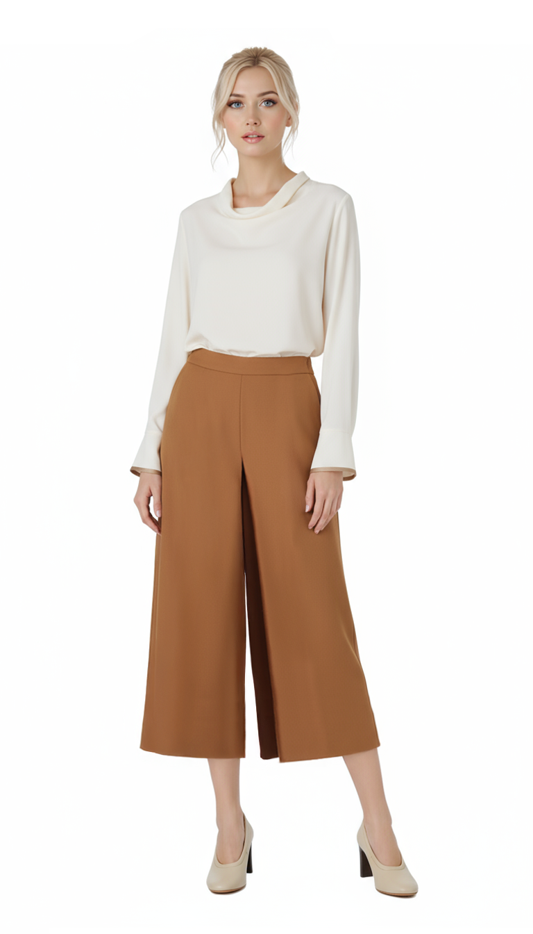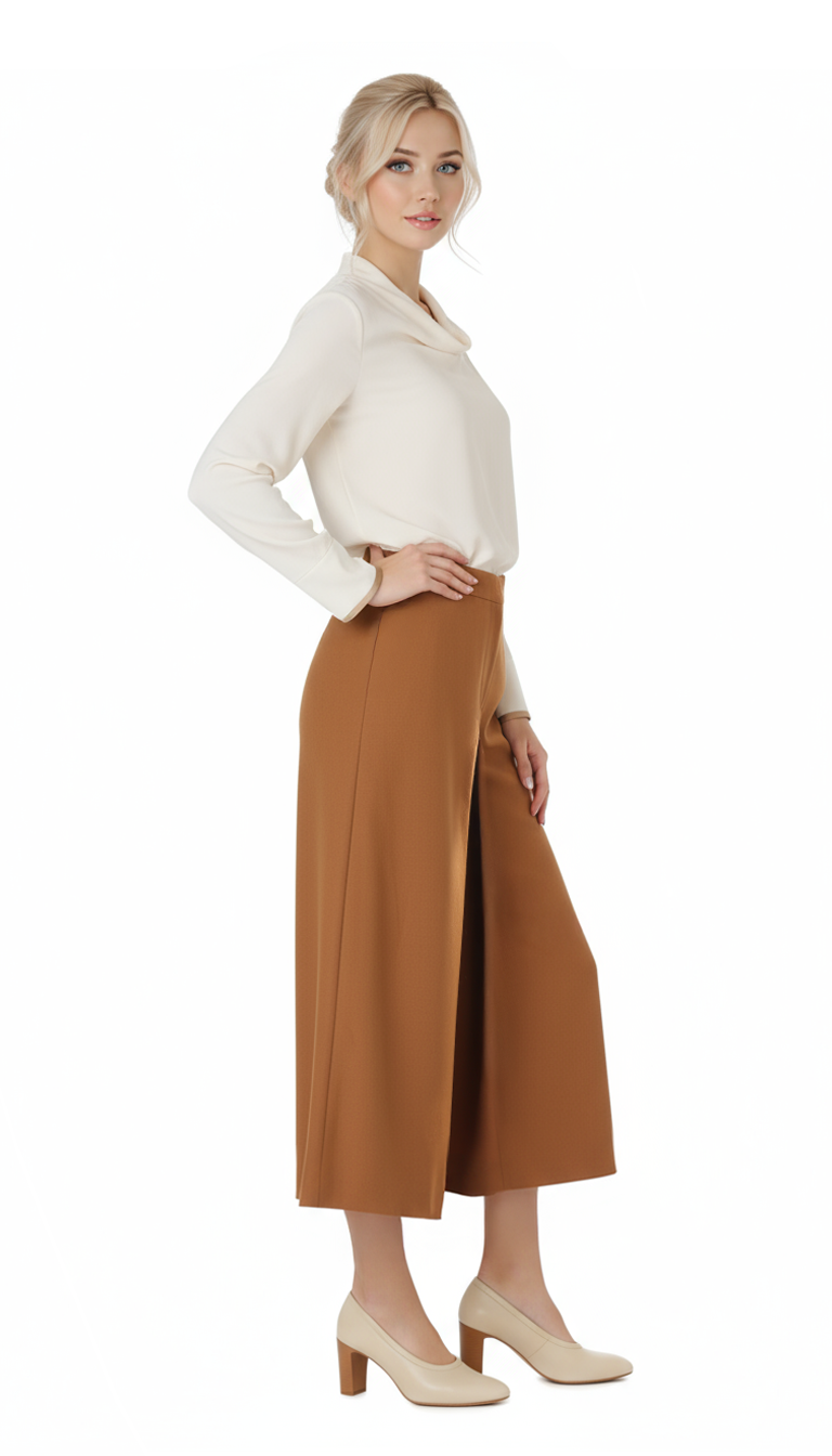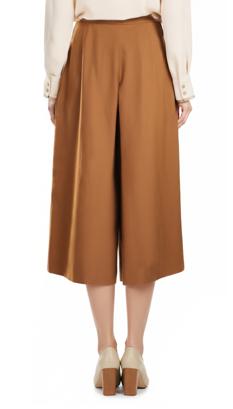 Новые шерстяные брюки кюлоты итальянского бренда Luisa Spagnoli горчичного цвета. Широкие укороченные брючины с фронтальной складочкой. Высокая посадка по талии. Застежка сбоку на молнию и пуговку. Врезные кармашки по бокам. В составе: 44% шерсть, 57% п.э, 3% эластан, без подклада — ткань экстра качества: средней плотности, мягкая. Состояние — новое, с оригинальной биркой Luisa Spagnoli.