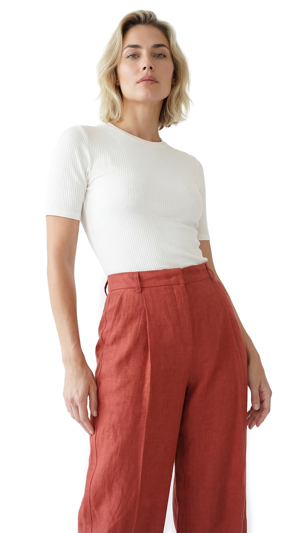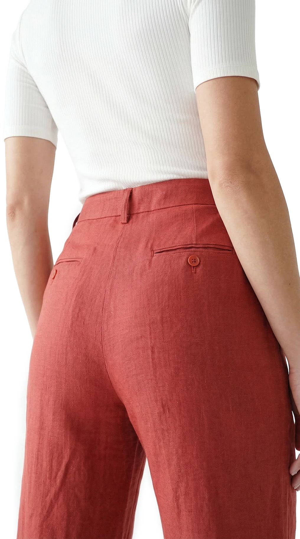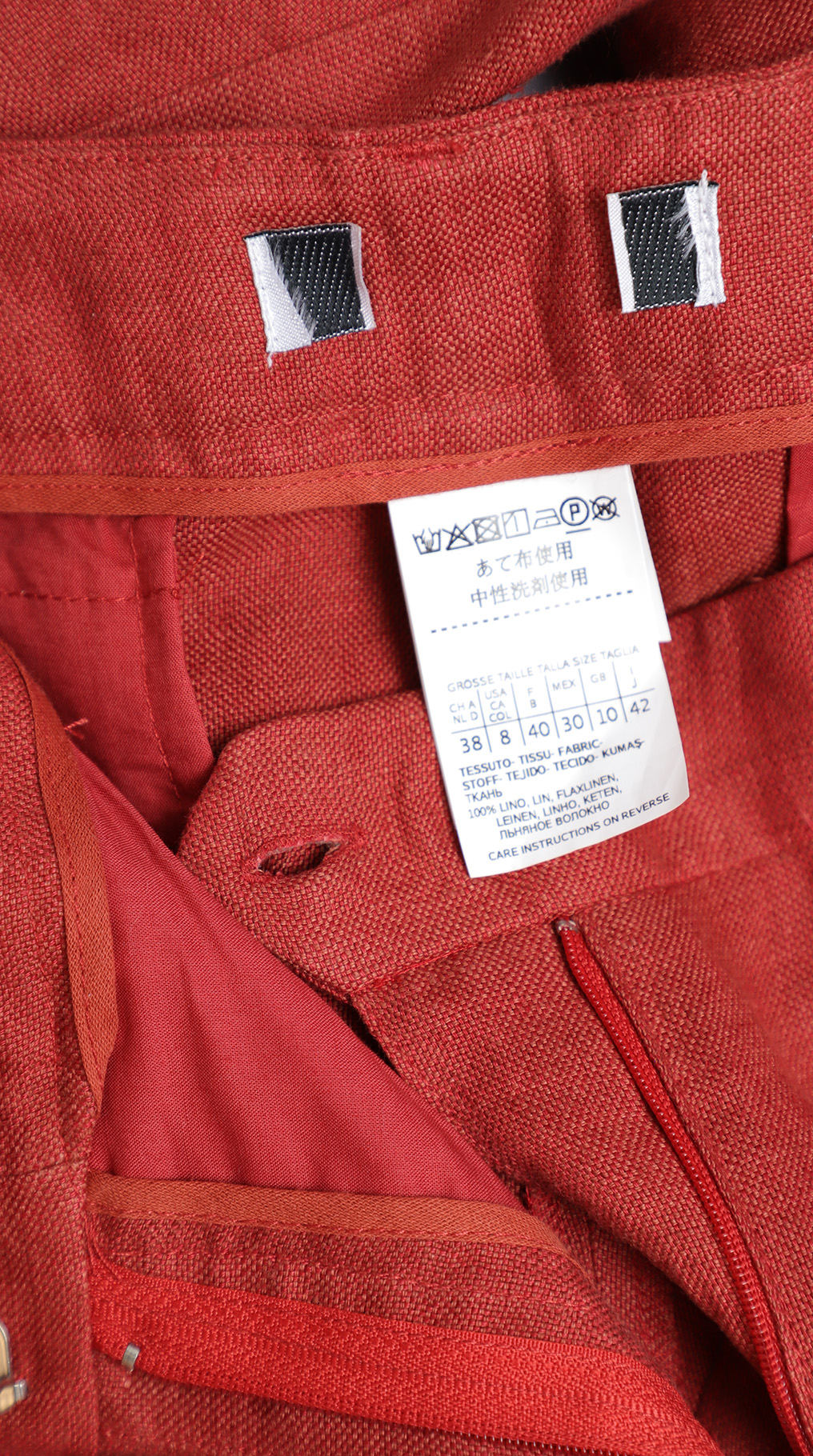 Оригинал. Новые льняные брюки-кюлоты концерна Max Mara (линия Weekend) шикарного терракотового цвета. Широкие укороченные брючины свободного кроя от бедра и посадкой по талии. Складочки по переду добавляют комфорта при посадке и придают стильный, модный, образ. Застежка на потайную молнию, пуговку и крючок. Кармашки по бокам, и по спинке на пуговке. Пошив — Албания. В составе: 100% лен, без подклада — ткань экстра качества: средней плотности, мягкая, приятная к телу, с красивым отблеском. Состояние — новое, из аутлета концерна MaxMara (ярлык бренда надрезан — это политика аутлета).