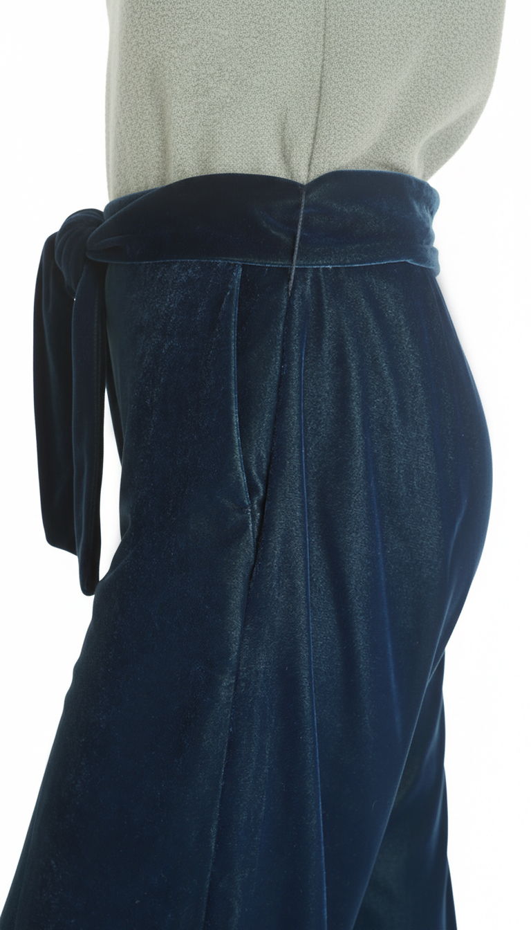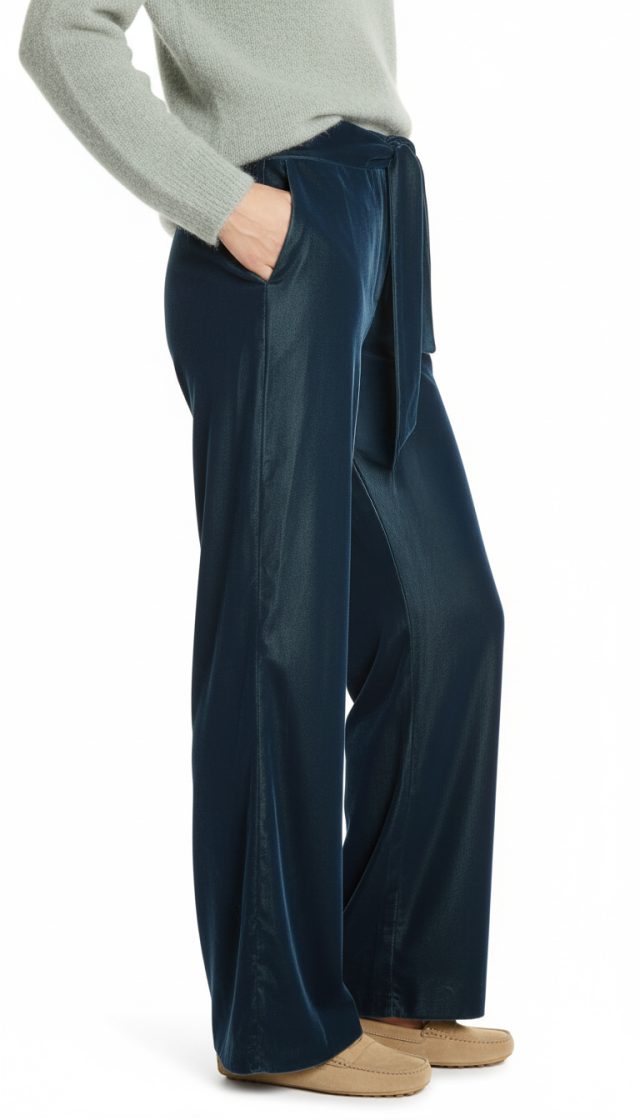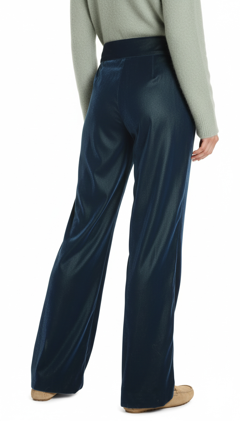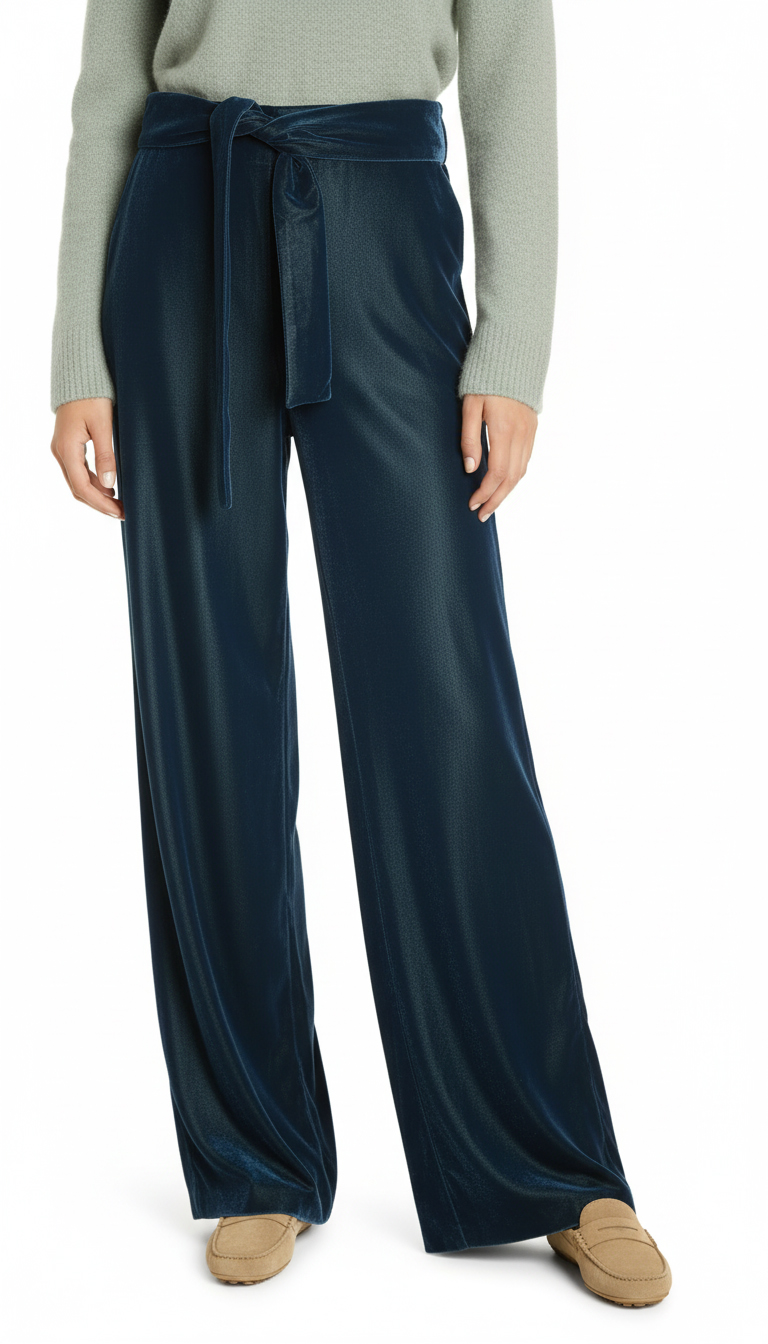 Оригинал. Новые бархатные брюки концерна Max Mara глубокого темно-зеленого цвета. Фасон с широкими брючинами, посадкой по талии и поясом (в комплекте). Застежка сбоку на молнию. Врезные кармашки по бокам. Стильный элегантный вариант — прекрасное дополнение к блузочке. Пошив — Италия (!). В составе: 71% ацетат, 29% вискоза, без подклада — ткань экстра качества: плотная, с очень мягким бархатистым ворсом. Состояние — новое, из аутлета концерна MaxMara (ярлык бренда надрезан — это политика аутлета).