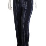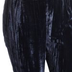 Оригинал. Новые бархатные брюки концерна Max Mara глубокого темно-синего (почти черного) цвета. Фасон с широкими брючинами и классической посадкой по талии. Застежка сбоку на молнию. Врезные кармашки по бокам. Мега-стильный, модный, вариант — универсальное дополнение к гардеробу. В составе: 100% п.э, без подклада — ткань экстра качества: плотная, с мягким бархатистым ворсом, фактурная — продольные линии создают объемный световой эффект — матового перелива на свету. Состояние — новое, из аутлета концерна MaxMara (ярлык бренда надрезан — это политика аутлета).