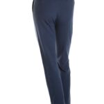 Новые трикотажные брюки легендарного итальянского бренда Max Mara темно-синего (чернильного) цвета немного зауженные книзу. Пояс со шличками под ремень. Застежка на потайную молнию и серебряную пуговку. Врезные кармашки по бокам и спинке. В составе: 96% хлопок, 4% эластан — ткань плотная, трикотажная, немного тянется. Состояние — новое, из аутлета концерна MaxMara (ярлык бренда надрезан — это политика аутлета).