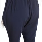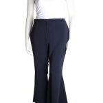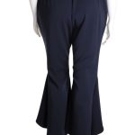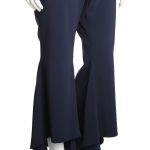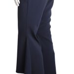 Оригинал. Новые дизайнерские брюки концерна Max Mara (линия Marina Rinaldi) темно-синего цвета. Интересный фасон с брючинами, расклешенными от колена. Комфортный пояс на резинке по спинке. Застежка на потайную молнию и пуговку. Без кармашков. Пошив — Тунис. В составе: 95% п.э, 5% эластан, без подклада — ткань средней плотности, очень мягкая, шелковистая, эластичная. Состояние — новое, из аутлета концерна MaxMara (ярлык бренда надрезан — это политика аутлета).