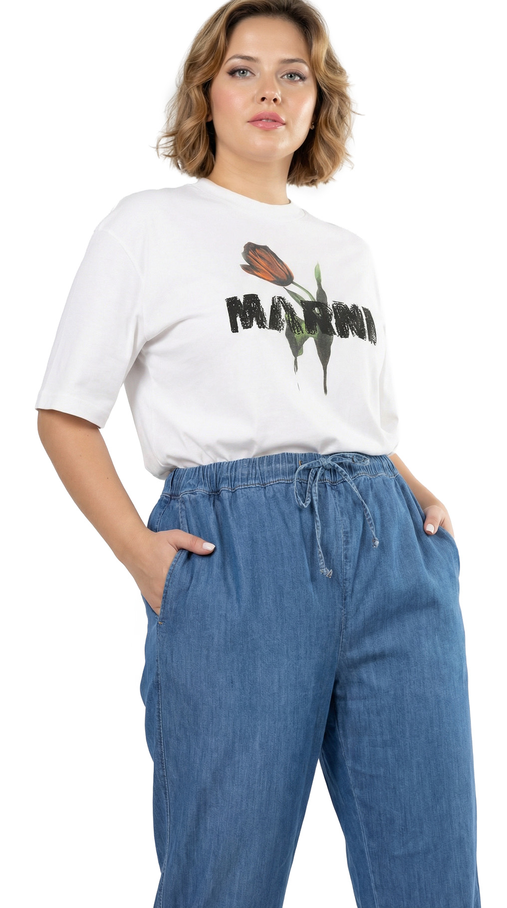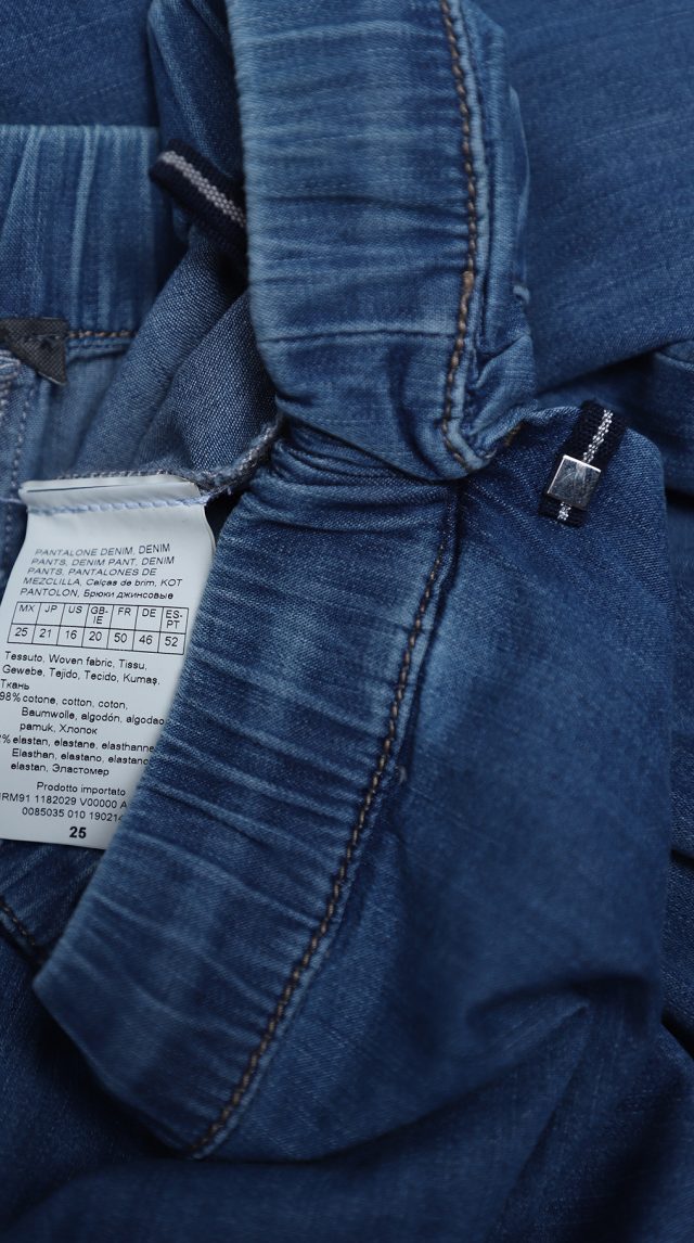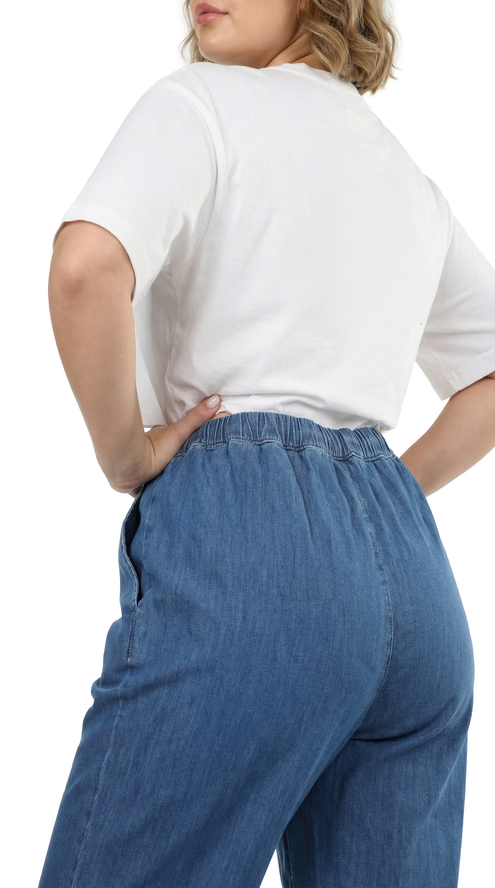 Оригинал. Новые летние брюки концерна Max Mara (коллекция Marina Rinaldi) голубого цвета под легкую “джинсу”. Зауженный фасон с посадкой по талии. Комфортный пояс на резинке с подвязкой на кантик. Врезные кармашки по бокам. Фирменная серебряная бусина на серебристой плашке. Без застежки. В составе: 98% хлопок, 2% эластан – ткань экстра качества: легкая, мягкая, эластичная. Состояние — новое, из аутлета концерна MaxMara (ярлык бренда надрезан – это политика аутлета).