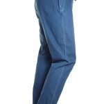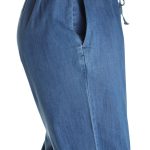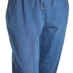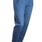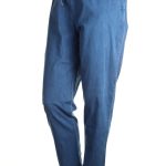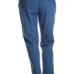 Оригинал. Новые летние брюки концерна Max Mara (коллекция Marina Rinaldi) голубого цвета под легкую “джинсу”. Зауженный фасон с посадкой по талии. Комфортный пояс на резинке с подвязкой на кантик. Врезные кармашки по бокам. Фирменная серебряная бусина на серебристой плашке. Без застежки. В составе: 98% хлопок, 2% эластан – ткань экстра качества: легкая, мягкая, эластичная. Состояние — новое, из аутлета концерна MaxMara (ярлык бренда надрезан – это политика аутлета).