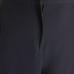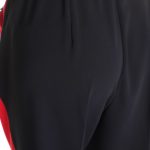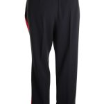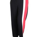 Новые брюки итальянского концерна Max Mara (линия Marina Rinaldi) глубокого черного цвета с контрастными бело-красными лампасами на левом боку. Зауженный фасон с посадкой по талии. Комфортный пояс с резинкой по спинке. Застежка спереди на пуговку и молнию. Врезные кармашки по бокам. Пошив — Тунис. В составе: 71% триацетат, 29% п.э, без подклада — ткань экстра качества: средней плотности, бархатистая. Состояние — новое, из аутлета концерна MaxMara (ярлык бренда надрезан — это политика аутлета).
