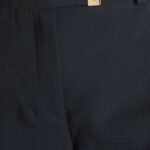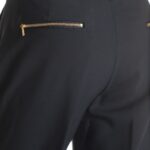 Новые шерстяные брюки Michael Kors (премиальная коллекция, пошив — Италия) черного цвета с золотой фурнитурой. Зауженные брючины с посадкой ниже талии. Пояс со шлицами под ремень. Застежка на молнию, клипсу и потайную пуговку. Врезные кармашки по бокам и кармашки на молнии по спинке. В составе 99% шерсть (virgin wool), 1% спандекс, без подклада — ткань премиум: средней плотности, шелковистая, с благородным отливом. Оригинал, из гардероба российской знаменитости. Состояние — новое, с фирменной биркой Michael Kors. Цена на бирке — 795$ (!)