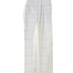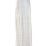 Новые брюки палаццо премиального итальянского бренда Stefanel белого цвета в светло-серую клетку. Свободный фасон с широкими расклешенными штанинами, изюминкой которых является глубокий вырез в боковом шве. Складки по переду для комфортной посадки. Врезные кармашки по бокам. Застежка на боковую молнию. Шикарный, стильный, вариант на лето. В составе: 64% натуральный модал, 32% п.э, 4% эластан — ткань легкая, мягкая, комфортная в жаркую погоду. Состояние — новое, с фирменной биркой Stefanel. Цена на бирке — 125 евро.