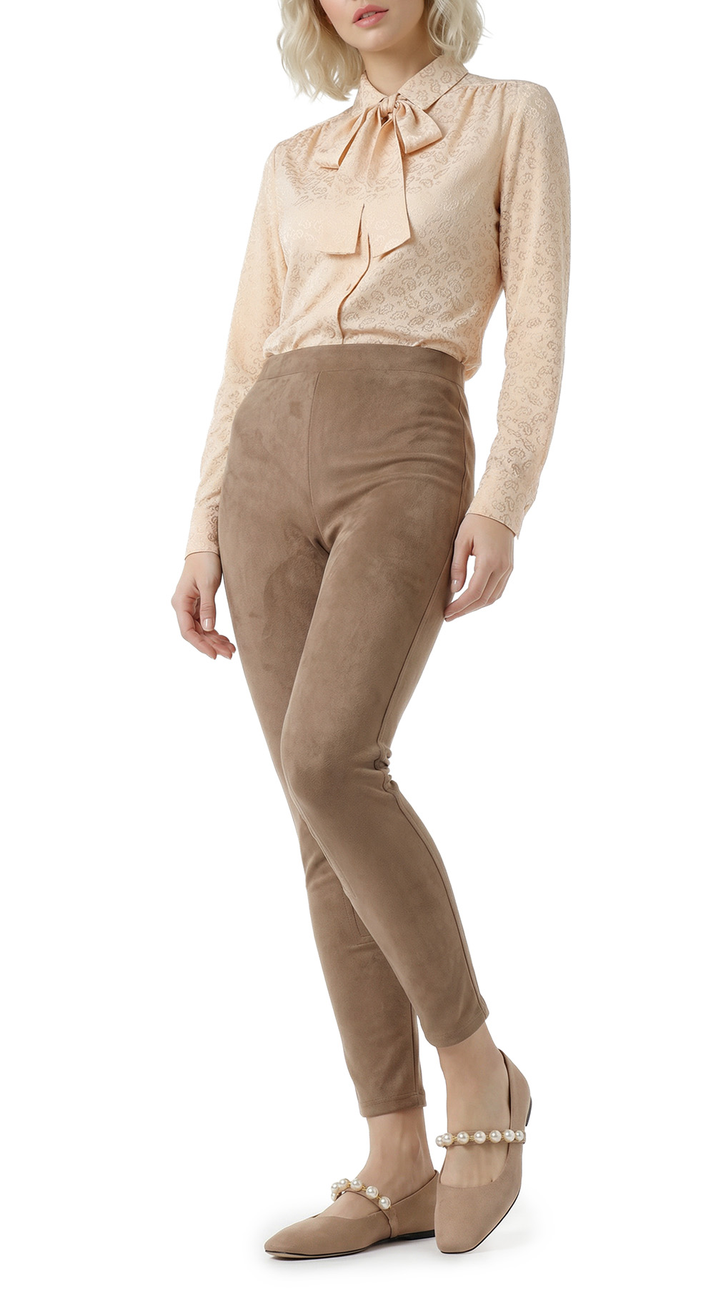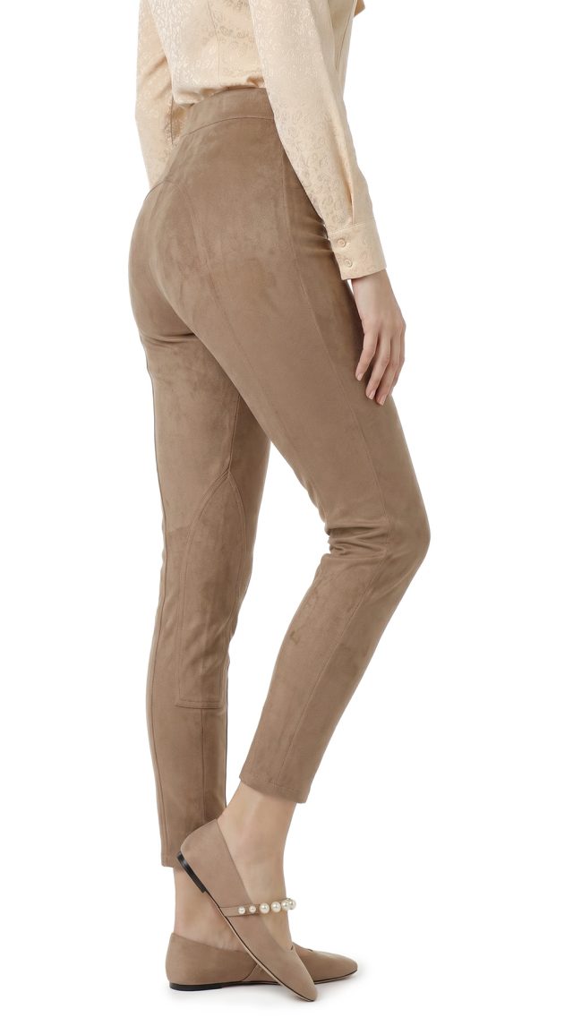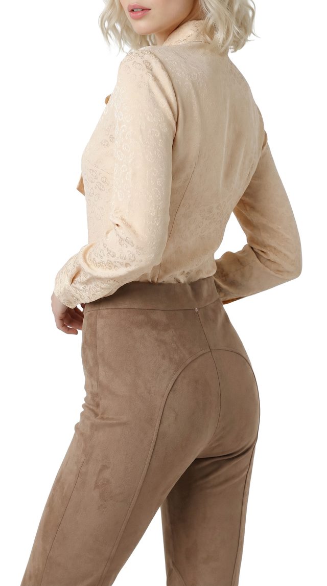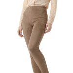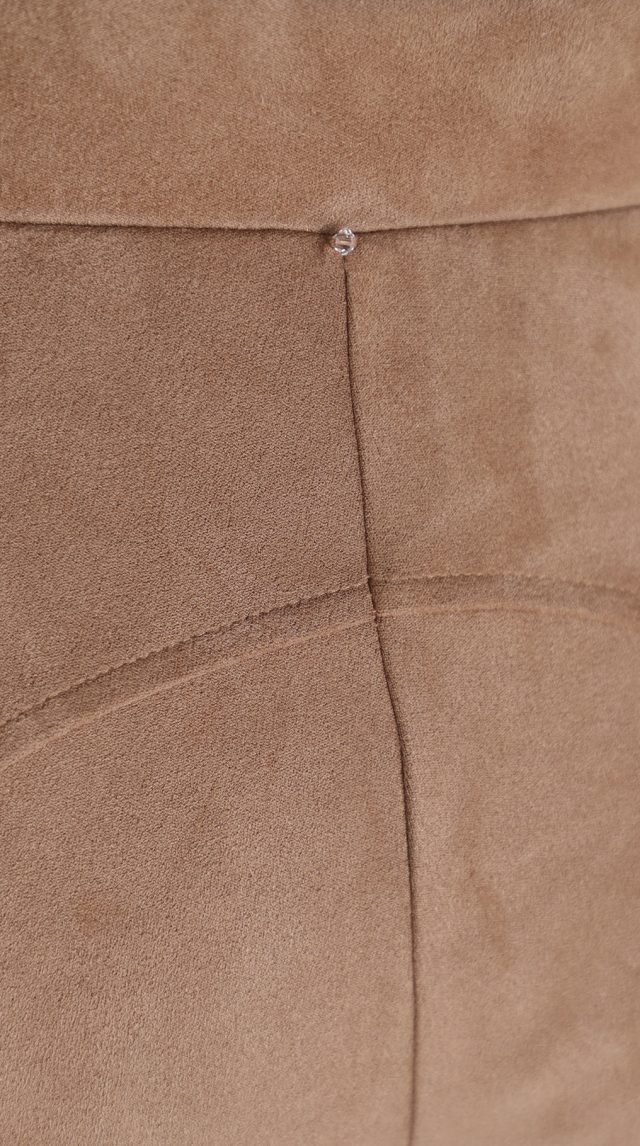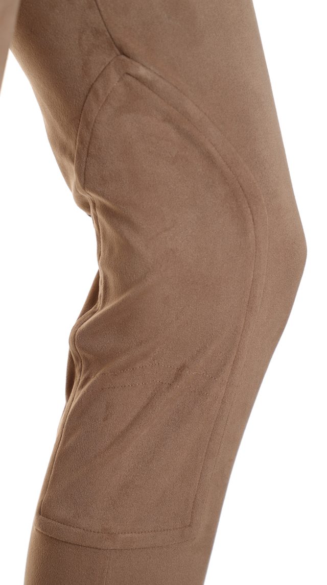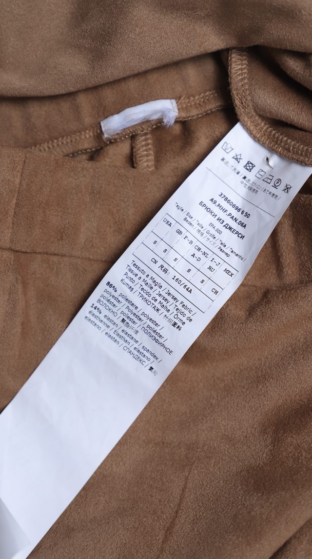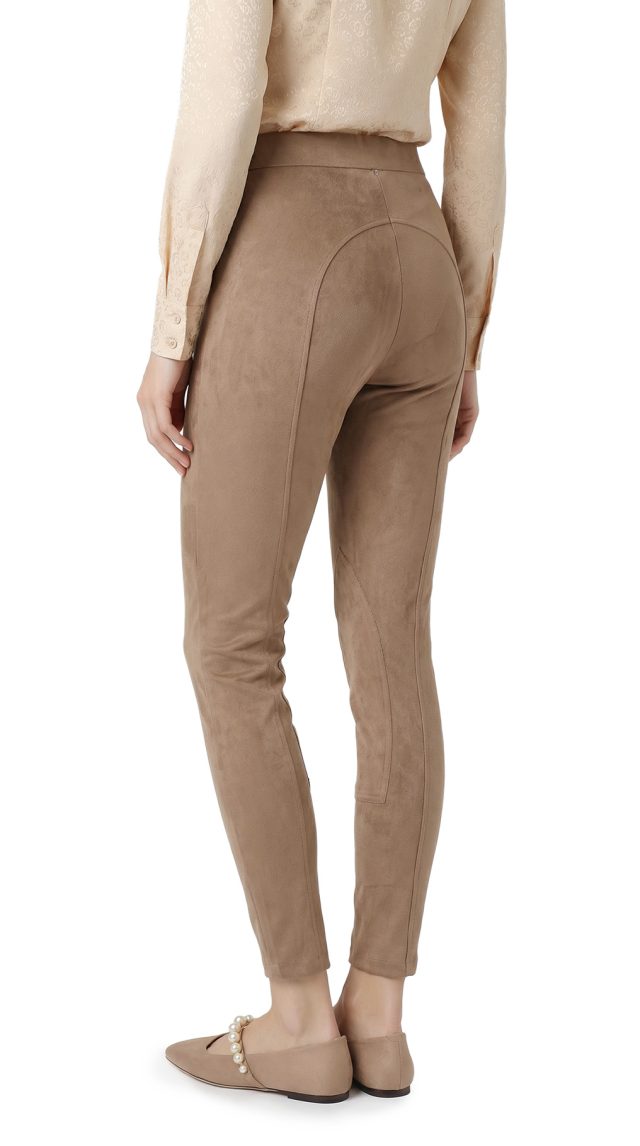 Оригинал. Новые брюки-поло концерна Max Mara под замшу песочного цвета. Зауженный фасон с высокой посадкой. Пояс по талии на резинке. Вставки на уровне колен и по внутренней стороне бедра — в точности передают фасон для верховой езды. Фирменная бусина-стеклярус по спинке. Без застежки. В составе: 86% п.э, 14% эластан, без подклада — ткань экстра качества: мягкая, эластичная, бархатистая (имитирующая натуральную замшу). Состояние — новое, из аутлета концерна MaxMara (ярлык бренда надрезан — это политика аутлета).