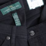 Оригинал из США. Новые брюки джинсовые Ralph Lauren черного цвета. Прямой фасон с классической посадкой по талии и поясом со шлицами под ремень. Застежка на молнию и фирменную пуговку с гравировкой бренда Ralph Lauren. Кармашки, отделанные стильными декоративными клепками, по переду и глубокие накладные карманы по спинке. В составе: 61% хлопок, 29% вискоза, 8% п.э, 2% эластан, без подклада — ткань средней плотности, мягкая, приятная в носке, с хорошим стретчем. Состояние — новое, с биркой магазина Ralph Lauren. Цена на бирке — 89.5$.