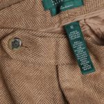 Оригинал из США. Шерстяные брюки Ralph Lauren (премиальная коллекция Exclusive) бежевого цвета в классическую «елочку». Прямой фасон с посадкой по талии. Пояс со шлицами под ремень. Застежка на молнию, потайную пуговку и фирменную перламутровую пуговку с гравировкой символики бренда. Врезные кармашки по бокам, накладной кармашек по спинке. Премиальное качество элитного бренда. В составе: 44% шерсть, 37% хлопок, 13% нейлон, 6% ангора, на подкладе из 100% натурального ацетата — ткань экстра качества: очень мягкая, шелковистая. В единственном экземпляре в России. Состояние — идеальное, как новое.