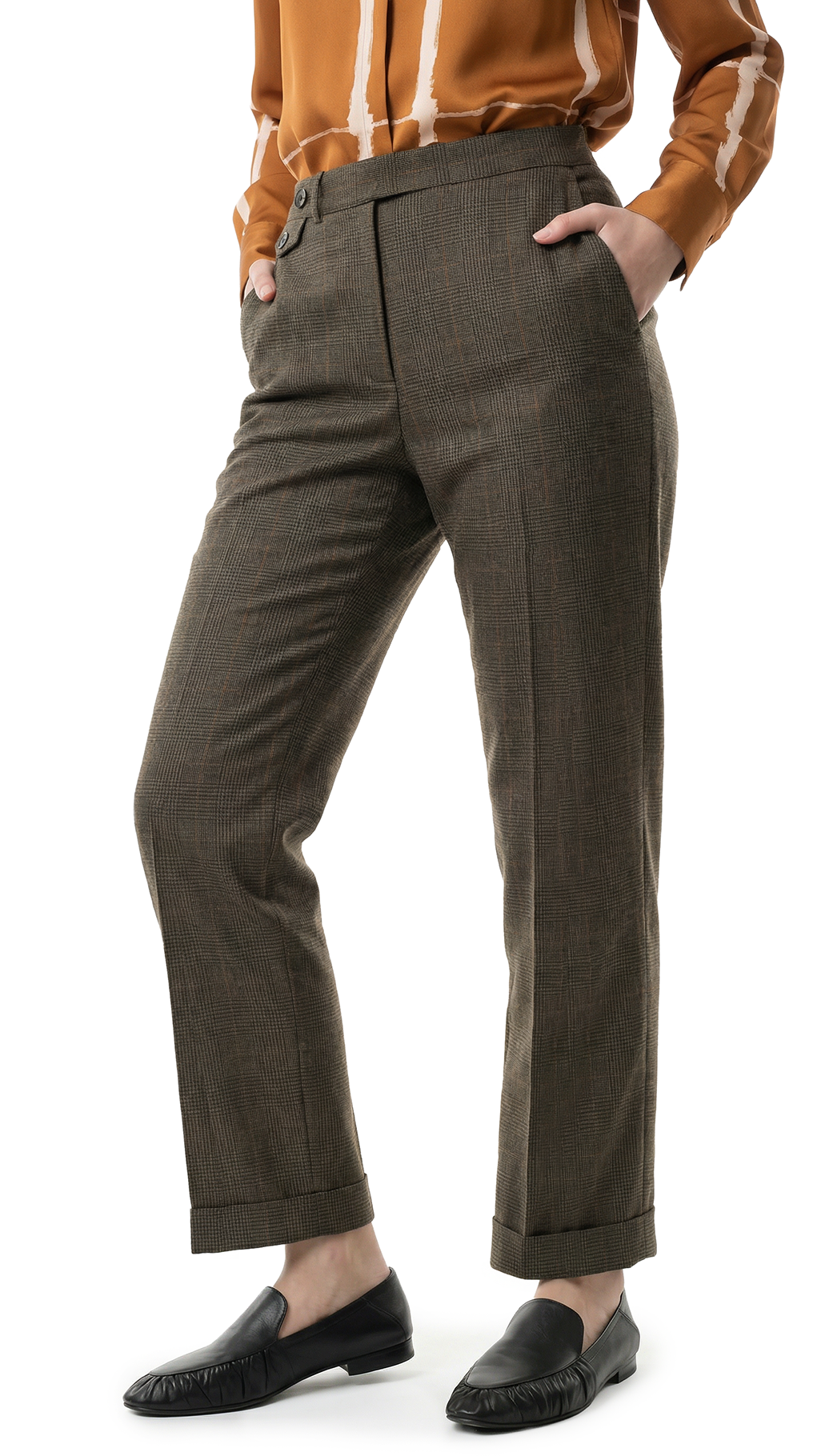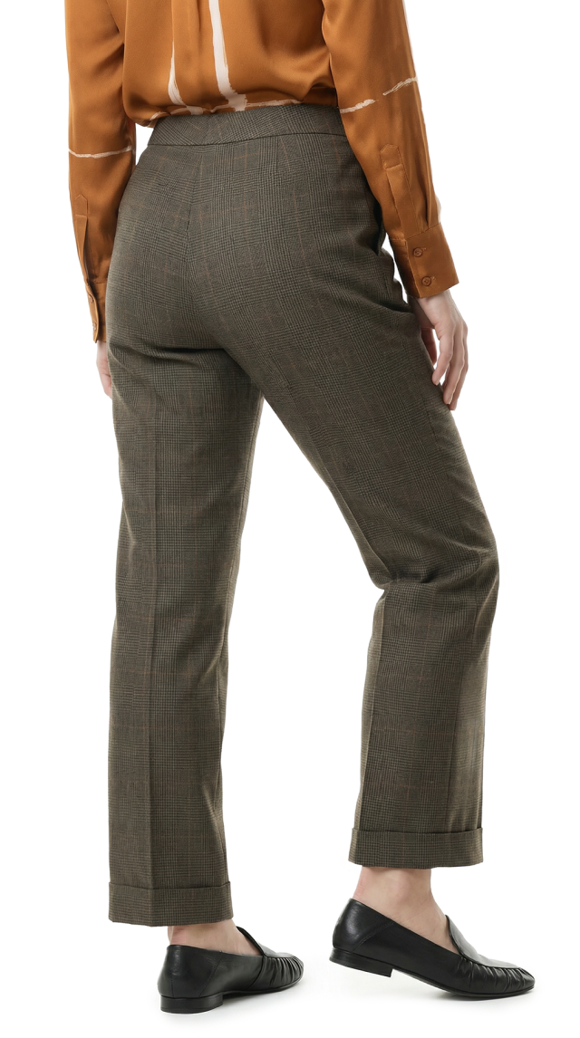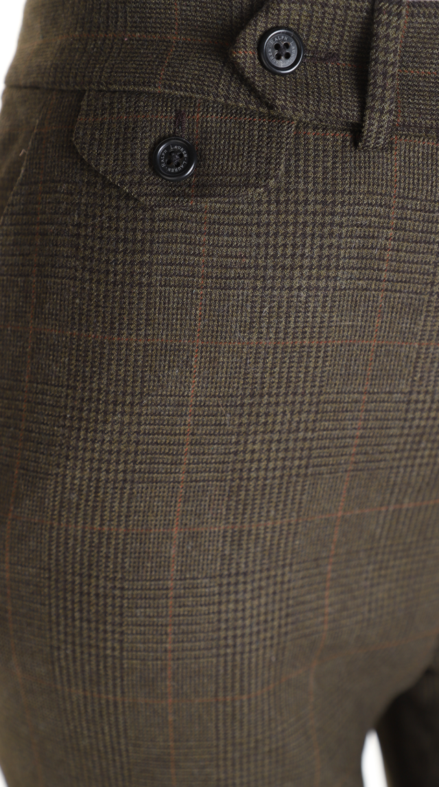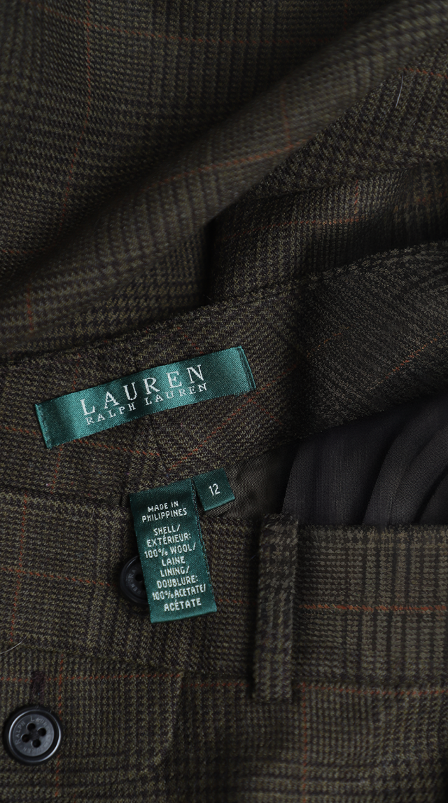 Оригинал из США. Шерстяные брюки американского премиального бренда Ralph Lauren оливково-коричневого цвета в мелкую «гусиную лапку». Прямой фасон с посадкой по талии и отворотами на брючинах. Застежка на молнию, потайную клипсу и фирменную пуговку с гравировкой бренда. Врезные кармашки по бокам. Декоративный фальш кармашек на пуговке. Премиальное качество пошива и материалов. В составе: 100% шерсть, на подкладе из 100% натурального ацетата — ткань экстра качества: средней плотности (двойного плетения — не вытягивается и не скатывается), мягкая, шелковистая, приятная к телу. Состояние: внешнее — идеальное, как новое, подклад с небольшим дефектом (разошелся шаговый шов, заштопан) — существенно учтено в цене.