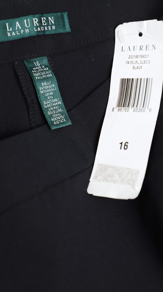 Оригинал из США. Новые шерстяные брюки премиального американского бренда Ralph Lauren черного цвета. Зауженный фасон с классической посадкой по талии. Застежка на молнию, потайную клипсу и пуговку. Два врезных кармашка по бокам. В составе: 96% шерсть, 4% эластан, без подклада — ткань экстра класса: средней плотности, двойного плетения (не стирается, не скатывается), с небольшим стретчем. Состояние — новое, с фирменной биркой Ralph Lauren.