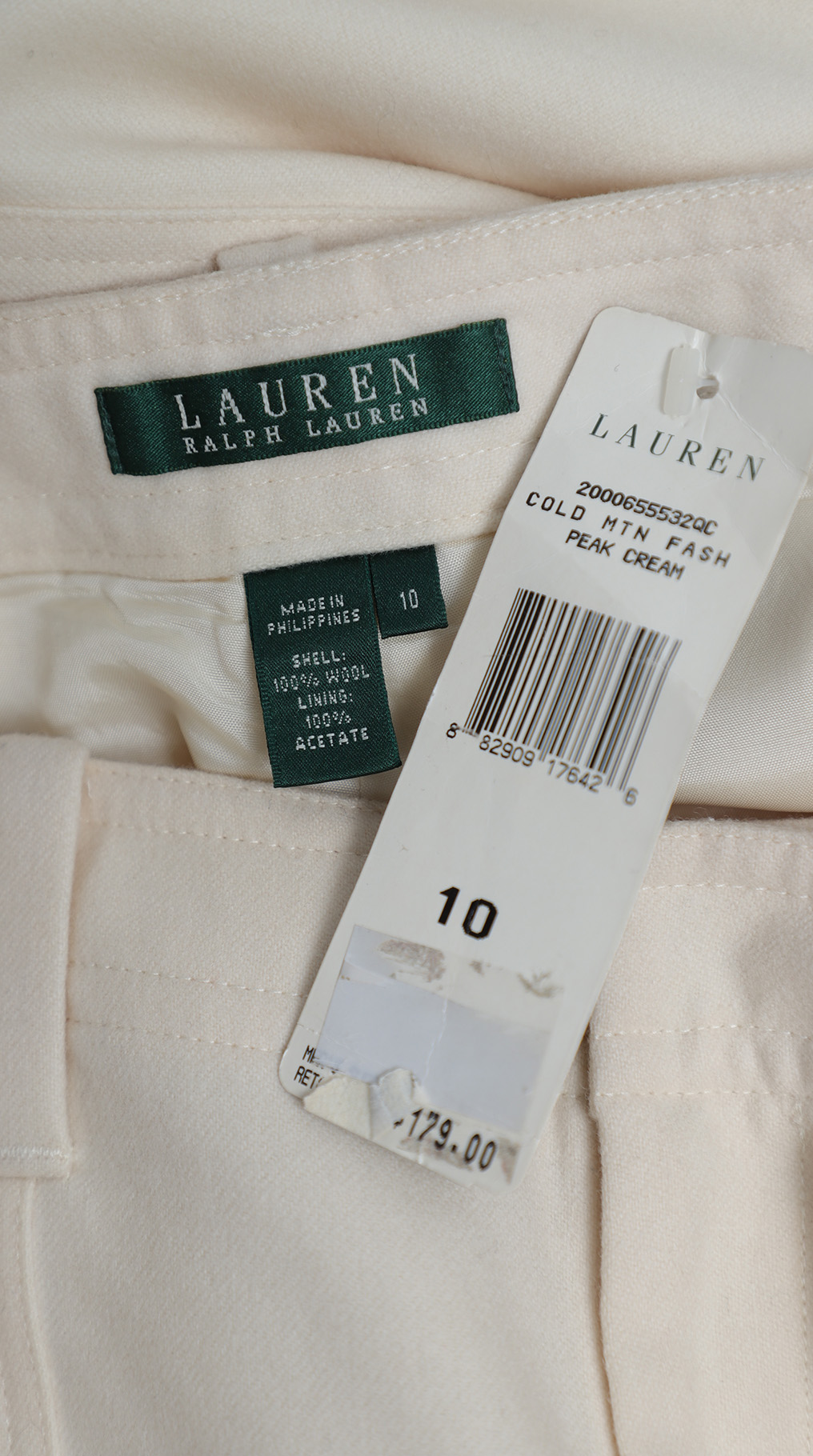 Новые шерстяные брюки Ralph Lauren молочно-белого цвета. Прямой фасон брючин с посадкой по талии. Эффектные кармашки на молнии. Врезные кармашки по бокам. Застёжка на молнию и потайные клипсы. Шлицы под ремень. В составе: 100% шерсть: супер мягкая, теплая и комфортная, на подкладе из натурального ацетата. Состояние — новое, с фирменной биркой Ralph Lauren. Цена на бирке — 179$.