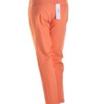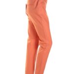 Новые летние брюки премиального итальянского бренда Stefanel яркого рыжего цвета с декоративной отделкой тесьмой по бокам. Зауженный фасон. Посадка по талии. Застежка на молнию и пуговку по переду. В составе: 51% хлопок, 45% п/э, 4% эластан: ткань экстра качества: плотная, мягкая, шелковистая. Состояние — новое, с фирменной биркой Stefanel. Первоначальная цена на бирке — 115 евро.