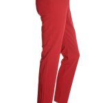 Новые брюки премиального итальянского бренда Stefanel красного цвета. Зауженный фасон с классической посадкой чуть ниже талии. Застежка на потайную молнию, клипсы и пуговку. Широкий пояс со шличками под ремень и красивой декоративной отстрочкой. Фальш-кармашки по спинке. В составе: 62% п/э, 33% вискоза, 5% эластан: ткань экстра качества: легкая, мягкая, шелковистая, хорошо тянется. Состояние — новое, с фирменной биркой Stefanel. Цена на бирке — 99 евро.