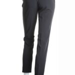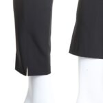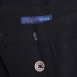 Классические брюки премиального итальянского бренда Trussardi (коллекция Jeans) черного цвета. Зауженный фасон с посадкой по талии. Застежка на брендированные пуговки и потайную клипсу. Врезные кармашки по бокам и мини-кармашки по спинке. Шлички на лодыжках для комфорта в движении. Плашка с символом бренда и стразой на поясе. Бирка с составом срезана — экспертная оценка — вискоза, п.э — ткань средней плотности, мягкая, бархатистая, хорошо тянется, «шуршащая» на ощупь. Состояние — отличное.