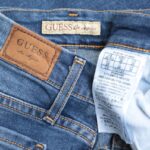 Зауженные потертые джинсы Guess Loss Angeles светло-синего цвета с контрастной бежевой отстрочкой и кожаным лейблом по спинке. Посадка стандартная, по талии. Пояс со шлицами под ремень. Врезные кармашки по переду, накладные — по спинке. Ткань джинсовая, плотная. Состояние — идеальное, как новое.
