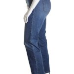 Оригинал с биркой. Новые потерто-рваные джинсы концерна Max Mara (линия iBlues) голубого цвета с оранжевой отстрочкой. Прямой фасон брючин с классической посадкой по талии. Застежка на потайную молнию и пуговку с гравировкой iBlues. Пояс со шличками под ремень. Врезные кармашки спереди, большие накладные кармашки по спинке. Фирменный кожаный шильдик iBlues по спинке. В составе: 94% хлопок, 4% п.э, 2% эластан, без подклада — ткань плотная, хорошо тянется. Состояние — новое, с оригинальной биркой iBlues.