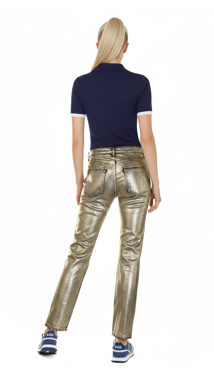Оригинал. Новые джинсы концерна Max Mara (линия Max&Co) золотистого цвета. Зауженный фасон брючин с посадкой ниже талии. Застежка на потайную молнию и пуговку с гравировкой Max & Co. Пояс со шличками под ремень. Врезные кармашки спереди, большие накладные кармашки по спинке. Фирменный круглый красный шильдик Max&co на кармашке. В составе: 100% хлопок, без подклада — ткань плотная, мягкая. Состояние — новое, из аутлета MaxMara (ярлык бренда надрезан — это политика аутлета).