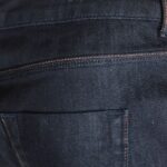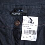 Новые джинсы французского бренда класса «люкс» Zapa Paris темно-синего (чернильного) цвета с контрастной рыжей отстрочкой и фурнитурой «под бронзу». Зауженный фасон брючин с посадкой ниже талии. Пояс со шлицами под ремень. Застежка на молнию и пуговку. Врезные кармашки по бокам, накладные — по спинке. Премиальное качество пошива и материалов. В составе 98% хлопок, 2% эластан, без подклада — ткань средней плотности, мягкая, с благородной «проседью» и отливом. Эксклюзив: в единственном экземпляре в России. Состояние — новое, с фирменной биркой Zapa.