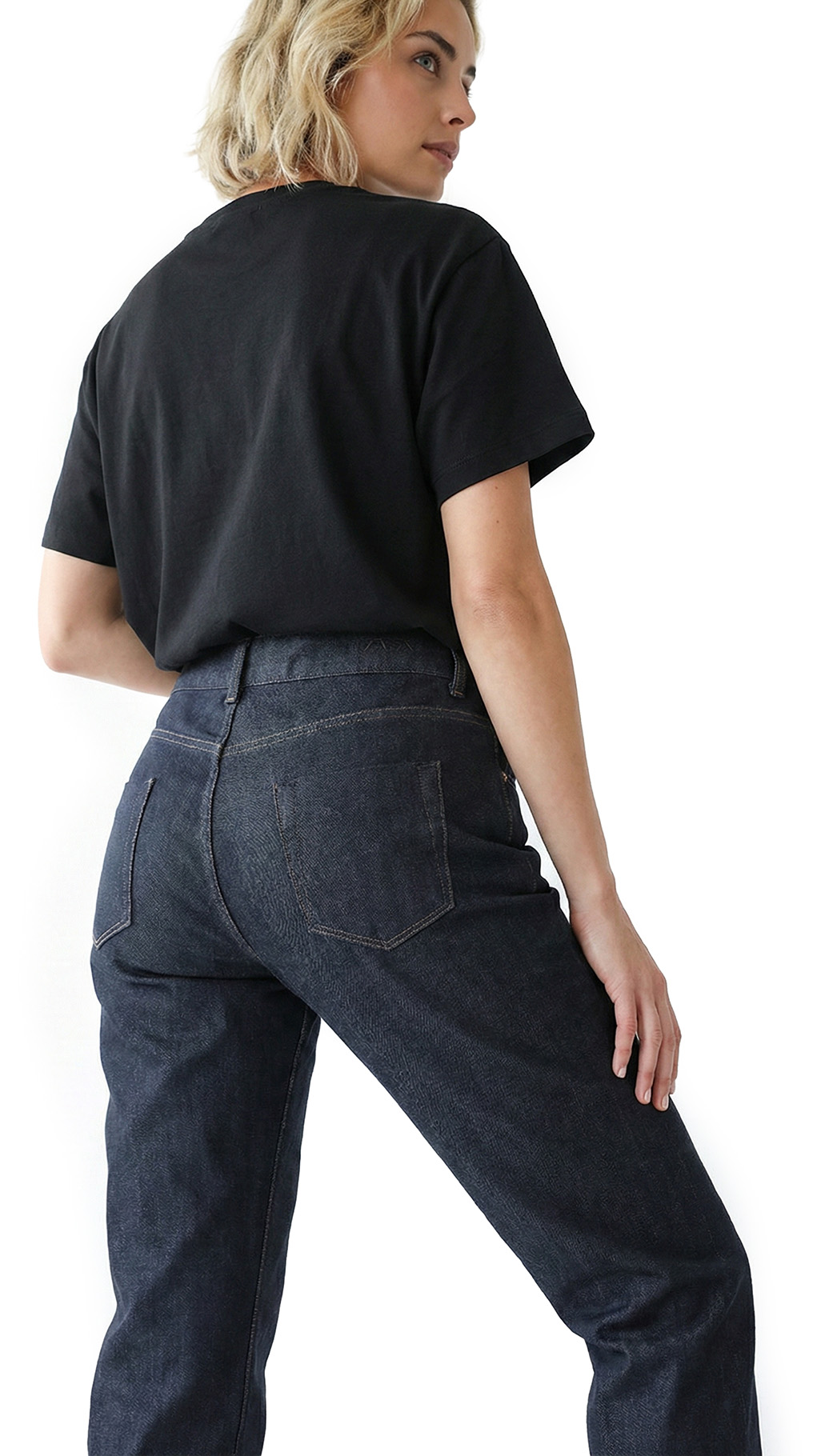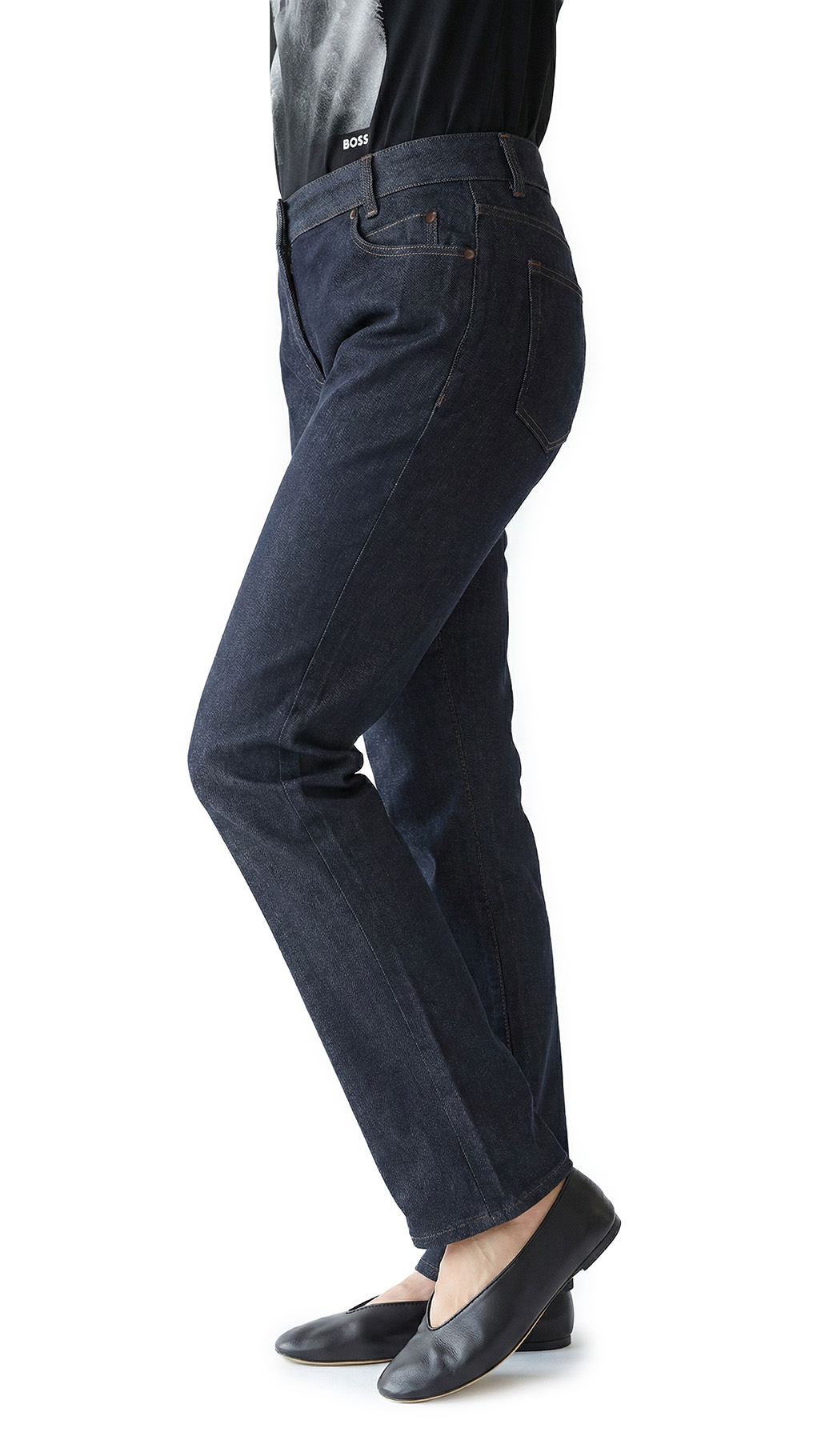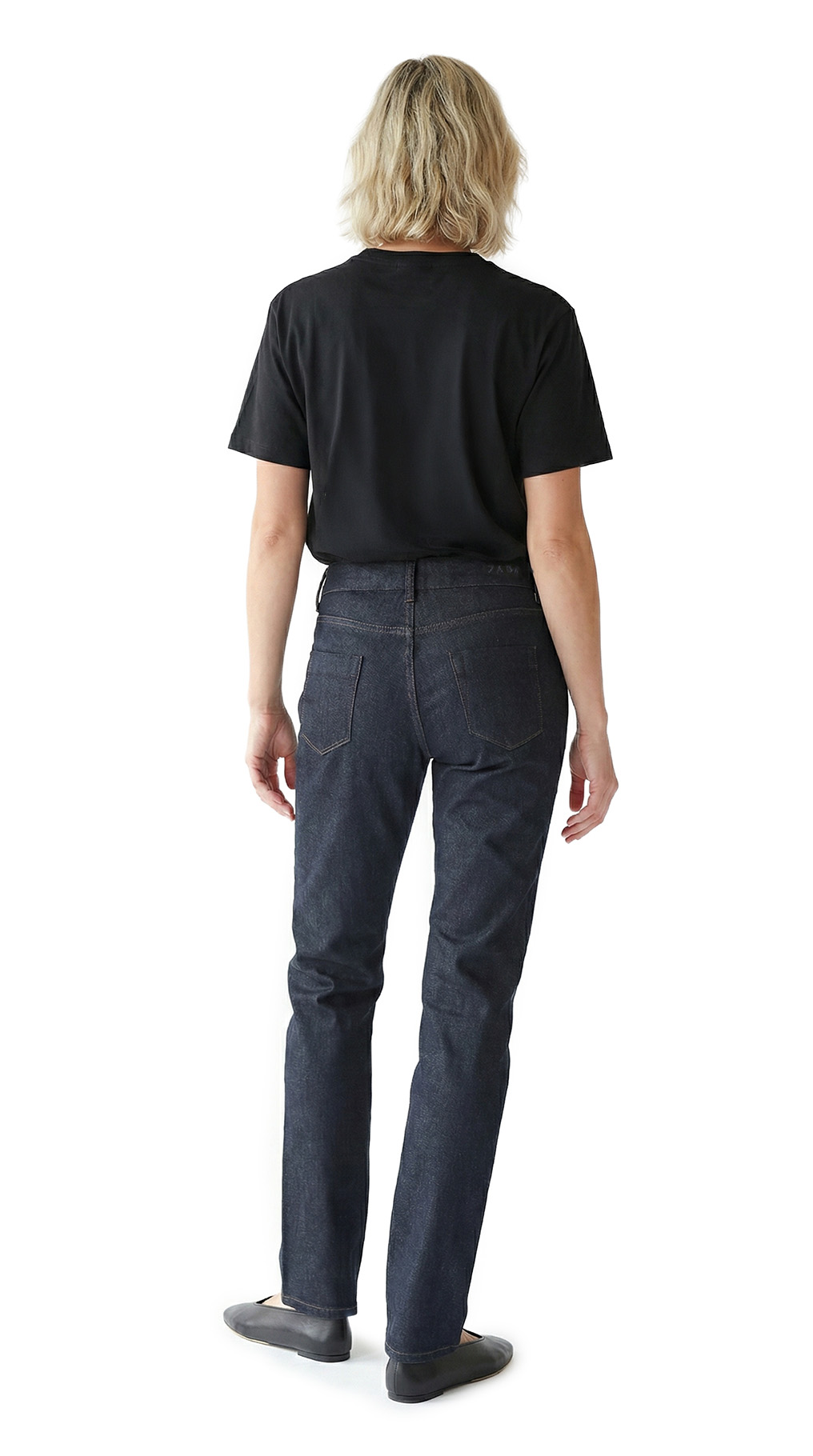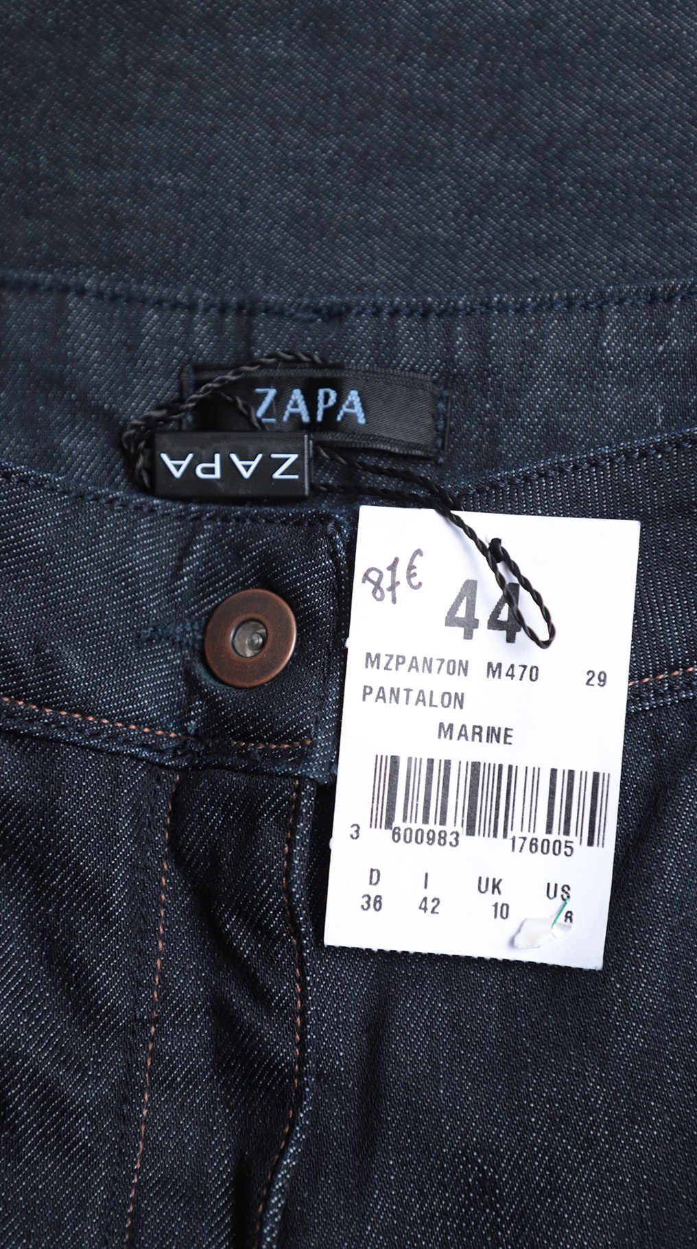 Новые джинсы французского бренда класса «люкс» Zapa Paris темно-синего (чернильного) цвета с контрастной рыжей отстрочкой и фурнитурой «под бронзу». Зауженный фасон брючин с посадкой ниже талии. Пояс со шлицами под ремень. Застежка на молнию и пуговку. Врезные кармашки по бокам, накладные — по спинке. Премиальное качество пошива и материалов. В составе 98% хлопок, 2% эластан, без подклада — ткань средней плотности, мягкая, с благородной «проседью» и отливом. Эксклюзив: в единственном экземпляре в России. Состояние — новое, с фирменной биркой Zapa.