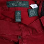 Новые джинсы Ralph Lauren цвета бордо. Прямой фасон брючин с посадкой чуть ниже талии. Пояс со шлицами под ремень. Застежка на молнию и пуговку с гравировкой бренда Ralph Lauren. Врезные кармашки по бокам, большие накладные карманы по спинке. В составе: 98% хлопок, 2% эластан — ткань плотная, по фактуре — «деним», с небольшим стретчем, без подклада. Состояние — новое, без бирки: хранились в гардеробе, без носки.