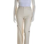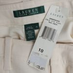 Новые шерстяные брюки Ralph Lauren бело-кремового цвета. Прямой фасон брючин, слегка расклешенный от колена, с посадкой по талии. Эффектные кармашки на молнии. Врезные кармашки по бокам. Застёжка на молнию и потайные клипсы. Шлицы под ремень. В составе: 100% шерсть: супер мягкая, теплая и комфортная, на подкладе из натурального ацетата. Состояние — новое, с фирменной биркой Ralph Lauren. Цена на бирке — 179$.