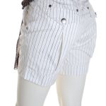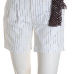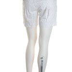 Новые летние шорты итальянского бренда Zona Brera (коллекция Red Label) белого цвета в серую полосу. Прямой фасон с посадкой чуть ниже талии. Шлички под ремень с коричневым шифоновым поясом в комплекте. Врезные кармашки по бокам и по спинке. Классическая застежка спереди на молнию и фирменную стальную пуговку. Глубокие складочки по спинке для комфортной посадки. Широкие отвороты на брючинах. В составе: 100% хлопок, без подклада — ткань легкая, отлично держит форму. Состояние — новое, с оригинальной биркой Zona Brera.