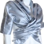 Новое шелковое болеро французского бренда класса «люкс» Zapa Paris серо-голубого цвета с серебристым отливом. Модный фасон «трансформер» на запах, без застежки, с рукавом 1/2 и удлиненным передом: можно носить навыпуск, подпоясать, завязать на бант или обвязать вокруг талии. Премиальное качество пошива и материалов. В составе: 55% натуральный шелк, 45% хлопок — ткань экстра качества: легкая, воздушная. Эксклюзив: в единственном экземпляре в России. Состояние — новое, с фирменной биркой Zapa. Цена на бирке — 160 евро (!).