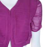 Новое шелковое болеро французского бренда класса «люкс» Zapa Paris цвета фуксии. Укороченный фасон с коротким рукавом, горловиной «треугольничком» и застежкой на потайные крючки. Элегантное, стильное дополнение к платью или блузке без рукавов. Премиальное качество пошива и материалов. В составе: 100% натуральный шелк «гофре», на подкладе из натурального шелка (перед и спинка) — ткань экстра: легкая, воздушная, фактурная (в складку). Эксклюзив: в единственном экземпляре в России. Состояние — новое, с фирменной биркой Zapa.