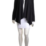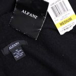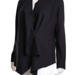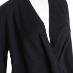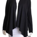 Новый шерстяной кардиган американского бренда Alfani черного цвета. Свободный покрой с открытым запахом и застежкой на потайную клипсу. Укороченная спинка, декорированная фактурными открытыми швами в виде ромба. Удлиненный перед с V-образными фалдами. Оригинал из США. В составе — 100% мериносовая шерсть — легкая и теплая, без подклада. Состояние — новое, с фирменной биркой Alfani.