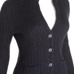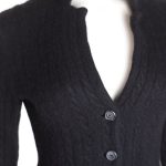 Оригинал. Трикотажный кашемировый кардиган американского премиального бренда Bloomingdale’s черного цвета. Красивая вязка «косами». Укороченный приталенный фасон с застежкой на пуговки. Резной воротничок стоечка — смотрится женственно и секси. Накладные кармашки. В составе: 2-ply 100% кашемир (нить двойного кручения — это экстра класс) — ткань легкая, как пушинка, очень мягкая, теплая, эластичная. Привезен из США. В единственном экземпляре в России. Состояние — идеальное, как новое.