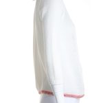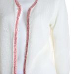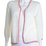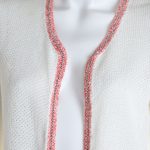 Новый трикотажный кардиган Cop Copine молочно-белого цвета с розовой окантовкой, декорированной цепочкой. Свободный фасон с открытым запахом без застежки и рукавом 3/4. В составе: 40% рами, 32% хлопок, 28% полиамид — ткань крупной вязки, полупрозрачная. Состояние — новое, с фирменной биркой Cop Copine.