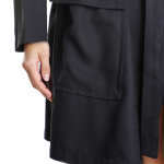 Новый кардиган легендарного французского бренда Cop Copine черного цвета. Прямой фасон с глубоким V-вырезом горловины, открытым запахом (без застежки) и подвязкой на пояс. Большие накладные кармашки с клапанами. Длинный рукав. В составе: 100% натуральный лиоцелл, без подклада — ткань средней плотности, мягкая, фактурная (жемчужная). Универсальное дополнение к гардеробу на прохладную погоду. Состояние — новое, с фирменной биркой Cop Copine.